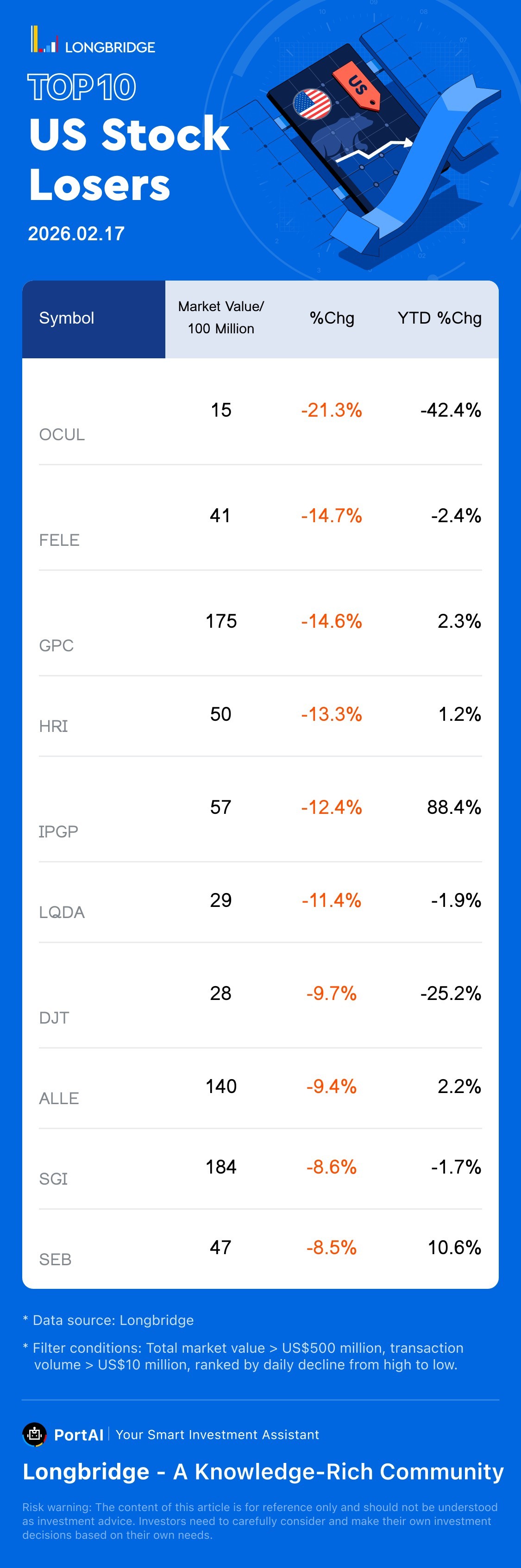 Ocular Therap(OCUL) fell 21.28%, with a trading turnover 347.0 Million USD, and a year-to-date fell 42.4%.