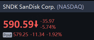 Sandisk stock fell 1.92% in after-hours trading following an announcement that Western Digital Corporation plans to sell approximately $3.1 billion worth of Sandisk shares.