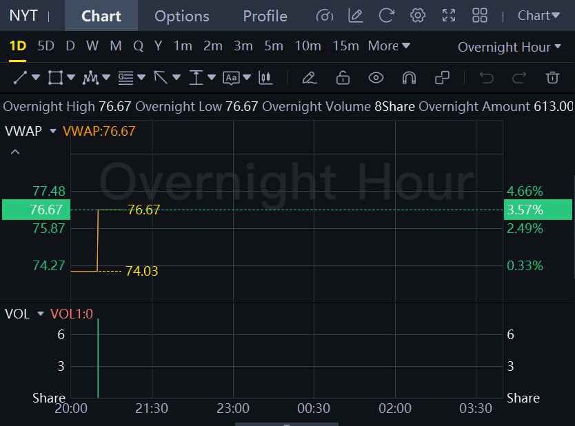 Berkshire initiated a holding in New York Times that is now worth about $375 million. New York Times stock is up about 3.6% in overnight trading to $76.67 in reaction to the Berkshire news after rising 1.5% in regular trading and hitting a new 52-week high.