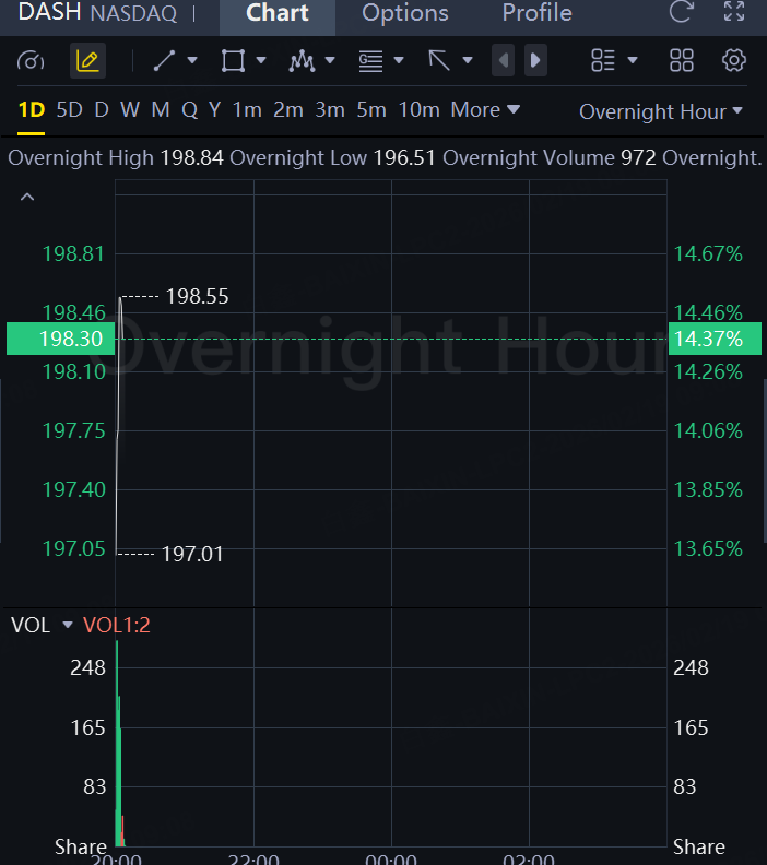 DoorDash (DASH) shares advanced 14% in overnight trading as a top- and bottom-line miss was overshadowed by a beat on the number of total orders, the cash value of orders, and upbeat guidance for the current quarter.
