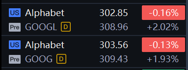 Alphabet shares gained 2% in premarket trading.