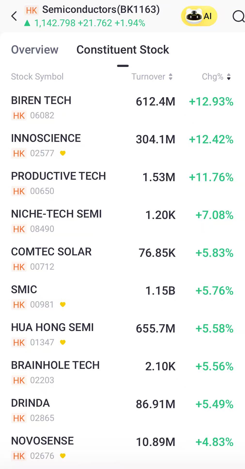 Semiconductor shares jumped in Hong Kong. Biren Tech up 13%; InnoScience up 12%; SMIC, Hua Hong Semi, Drinda up over 5%.