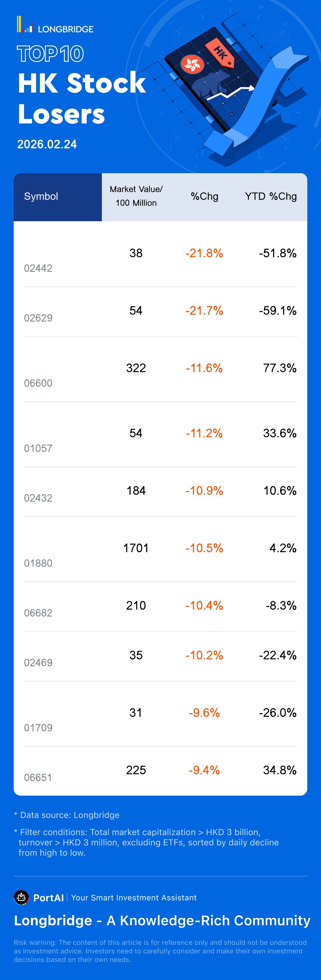 EASY SMART GP(02442) fell 21.83%, with a trading turnover 10.8 Million HKD, and a year-to-date fell 51.8%.