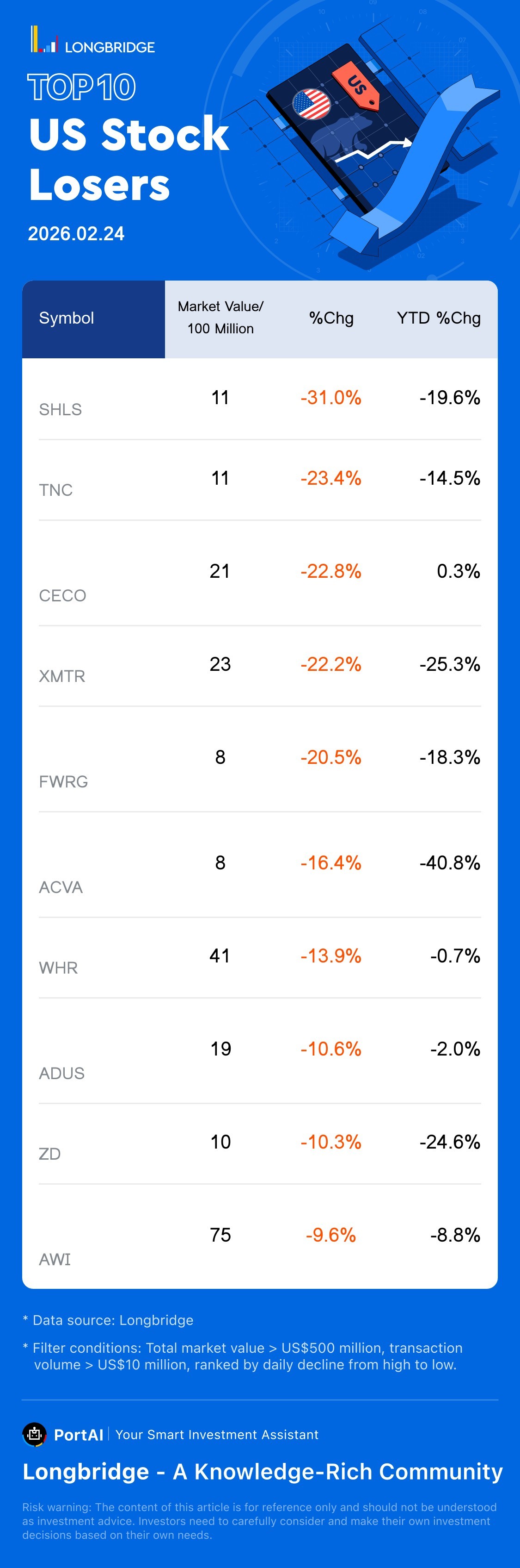 Shoals Tech(SHLS) fell 30.96%, with a trading turnover 184.5 Million USD, and a year-to-date fell 19.6%.