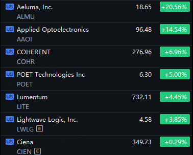 Photonics Stocks Rally. Aeluma Up 21%; AAOI Up 15%; Coherent Up 7%; POET Up 5%; Lumentum And Lightwave Up 4%