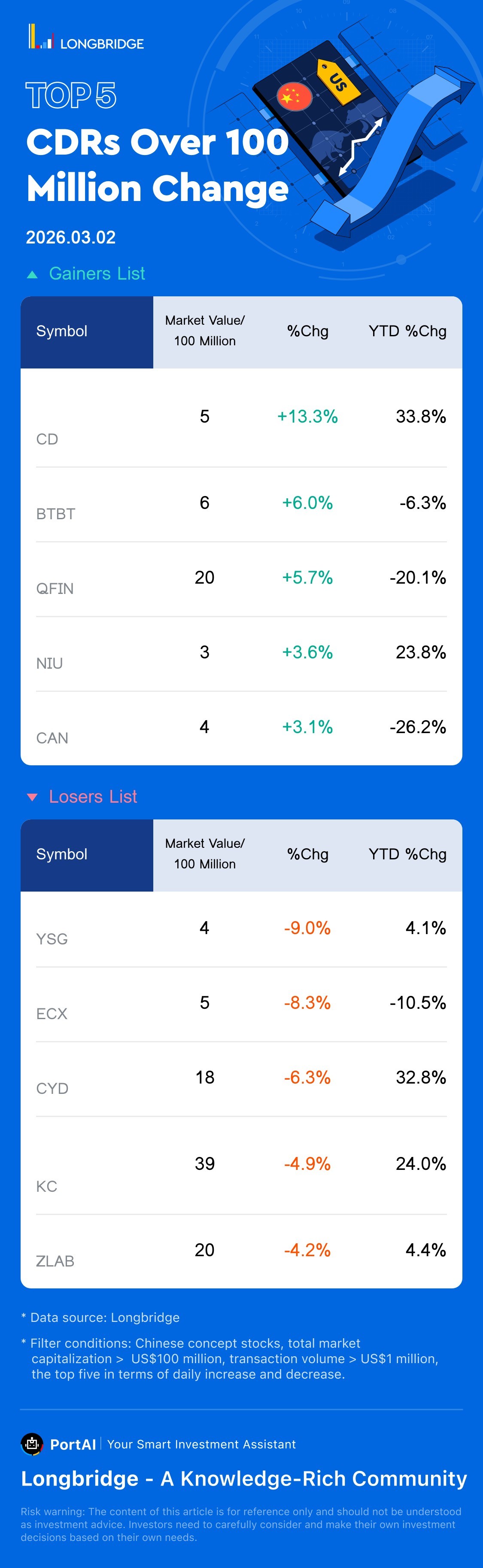 Chaince Digital(CD) rose 13.29%, with a trading turnover 2.1 Million USD, and a year-to-date rose 33.8%.