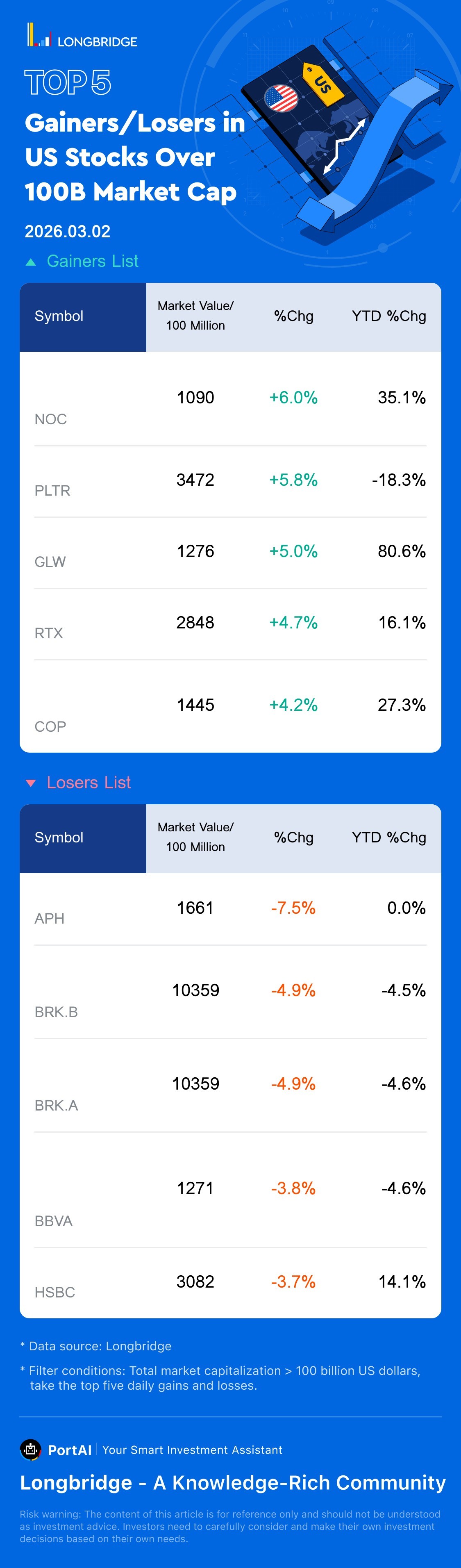 Palantir Tech(PLTR) rose 5.82%, with a trading turnover 10.5 Billion USD, and a year-to-date fell 18.3%.