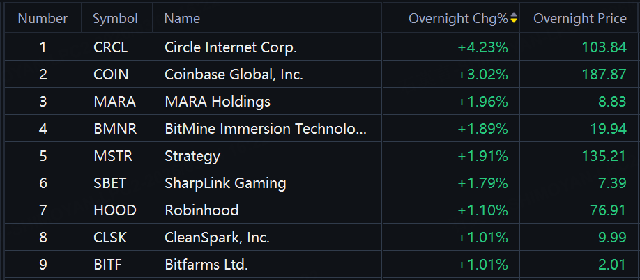 24H | Crypto Shares Jump as Bitcoin Rises Above $69,000. Circle up 4%; Coinbase up 3%; MARA, Strategy, BitMine up about 2%