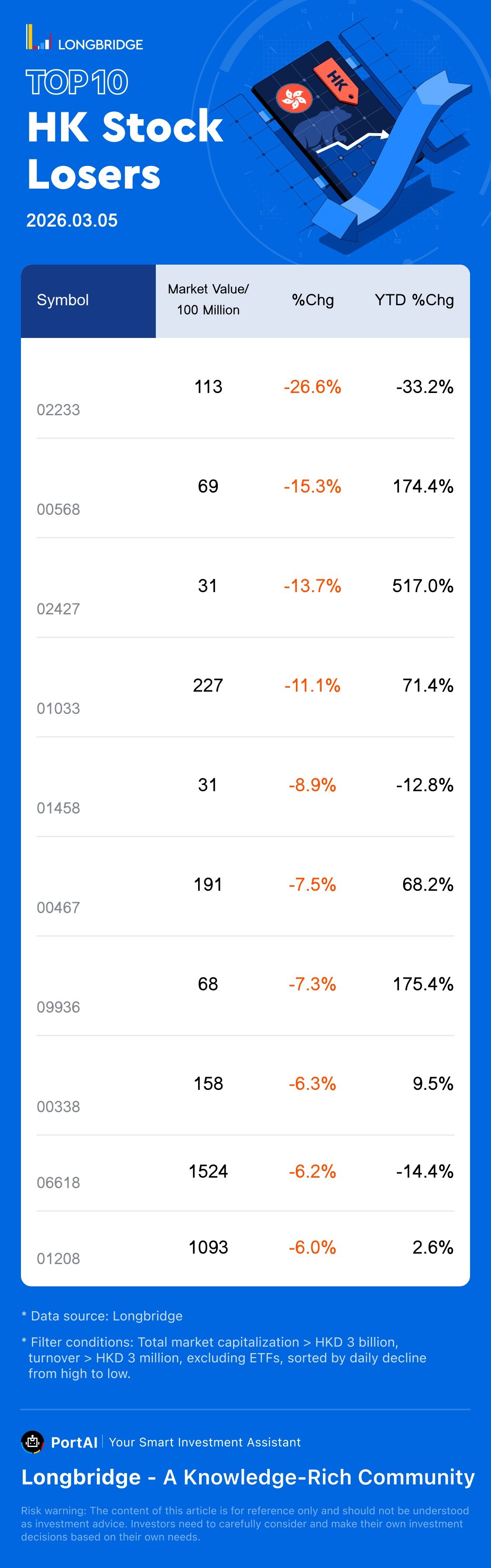 SHANDONG MOLONG(00568) fell 15.29%, with a trading turnover 5.6 Billion HKD, and a year-to-date rose 174.4%.