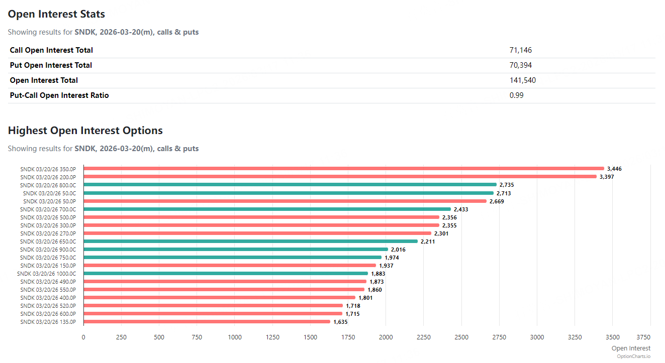 These trades represent relatively low-cost, high-leverage bets, signaling strong conviction among some investors in SNDK’s long-term upside—potentially driven by sustained demand growth in AI-related memory. The positioning implies expectations that the stock could break above the $1,000 level over time.