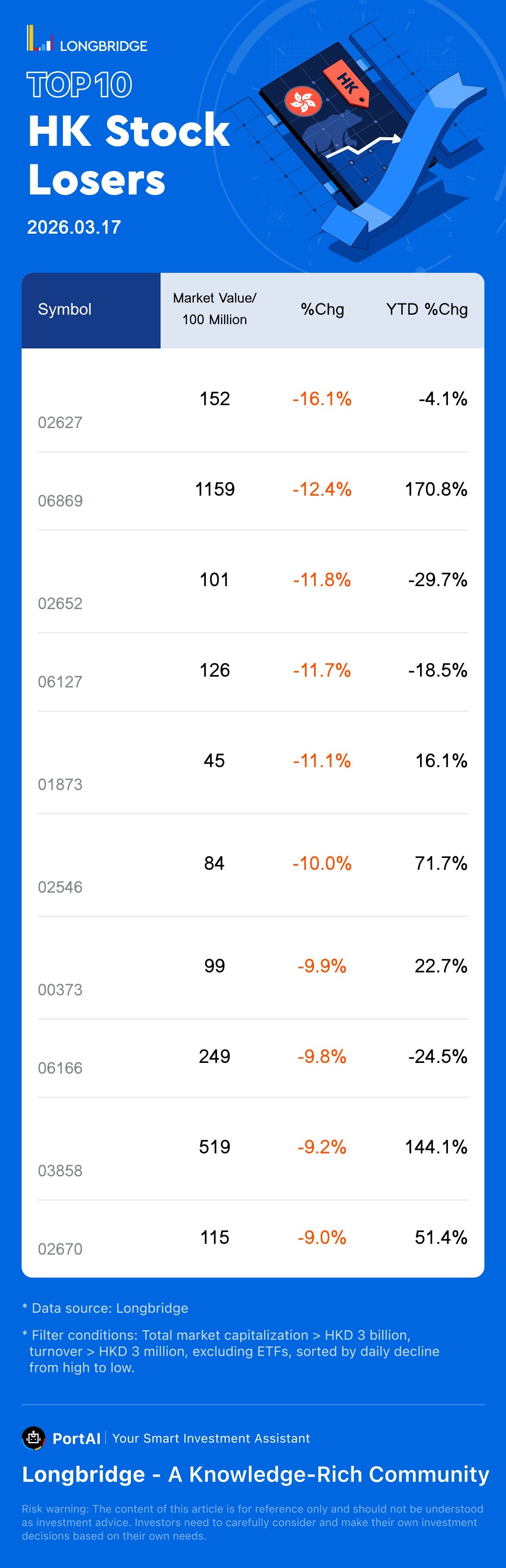 AB&B BIO-TECH-B(02627) fell 16.09%, with a trading turnover 43.7 Million HKD, and a year-to-date fell 4.1%.