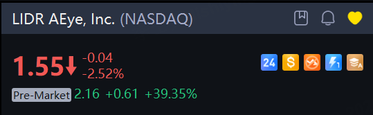 Lidar systems maker AEye shares surged 39.4% in premarket trading.