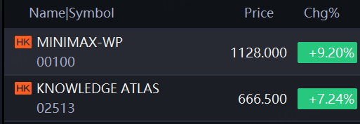 MiniMax stock soared 9.2% while Knowledge Atlas rose 7.24%.