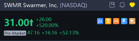Drone maker Swarmer shares jumped another 52.1% in premarket trading on Wednesday.