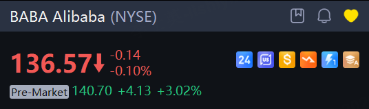 US-listed Alibaba shares gained more than 3% in premarket trading.