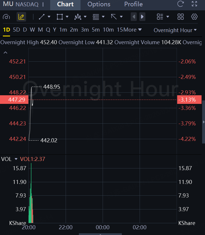 Micron's $5 billion boost to its 2026 capital spending plan to keep up with the rising demand pulled the shares 3% lower in overnight trading. SanDisk down 2%.