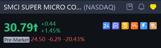 Super Micro Computer shares plummeted 20.4% in premarket trading due to negative news.