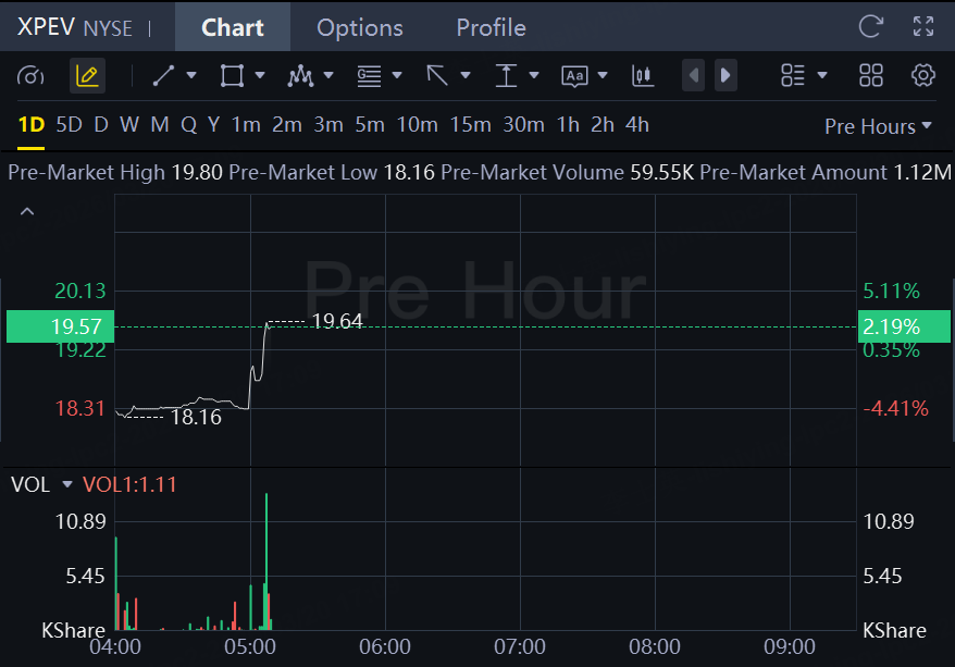 US-listed XPeng shares rose 2.2% in premarket trading, erasing earlier losses.