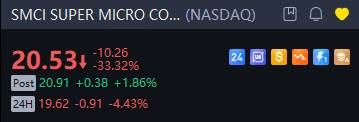 SUPER MICRO COMPUTER INC fell 4% in overnight trading following 33% drop in the prior session.