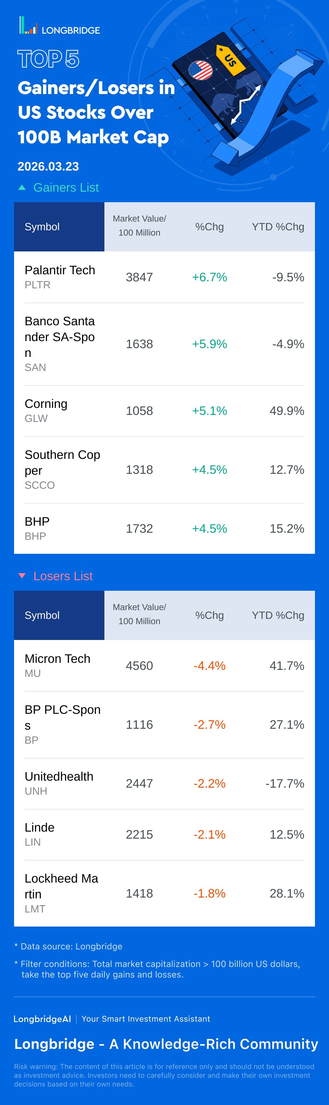 Micron Tech(MU) fell 4.39%, with a trading turnover 22.6 Billion USD, and a year-to-date rose 41.7%.