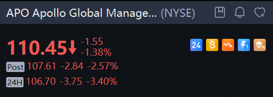 Apollo Global Management shares dropped 3.4% in overnight trading. Apollo Global's $25 billion private credit fund, Apollo Debt Solutions (ADS), said on Monday it was curbing redemptions at 5% of its shares after investors sought to withdraw approximately 11.2% of the total.