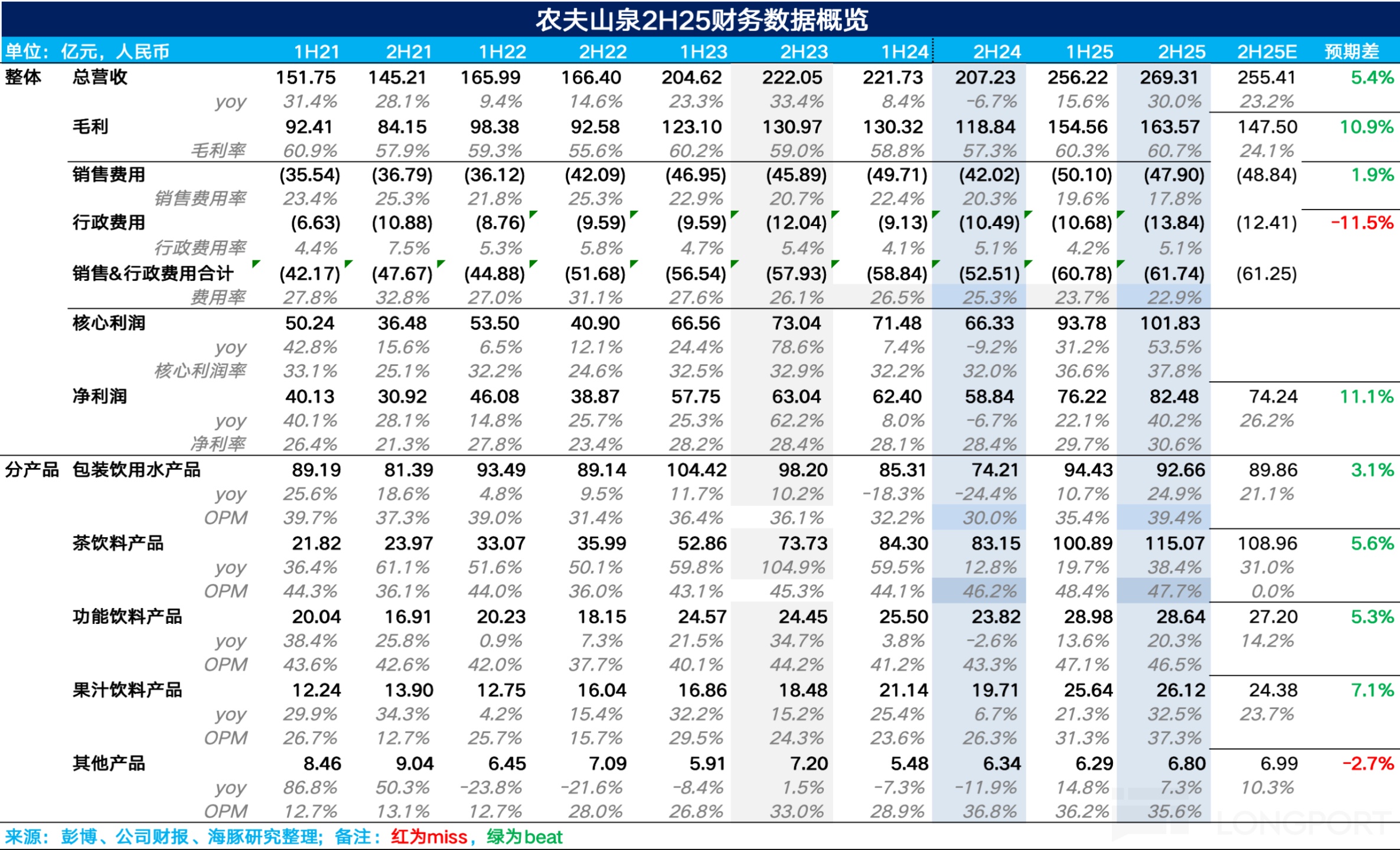 H2 2025 revenue was RMB 26.93bn (+30% YoY) and net profit RMB 8.25bn (+40% YoY). With the high-intensity '10k-store displays' push, packaged water and tea drove strong topline, while better ops unlocked operating leverage. Profit growth accelerated, delivering a comprehensive beat.