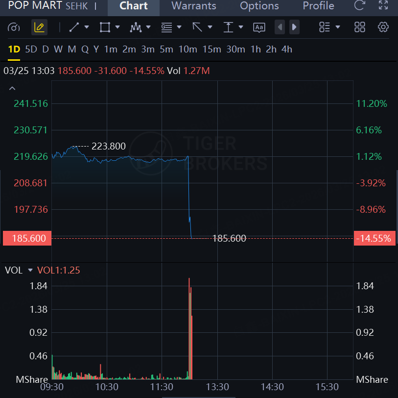 Pop Mart International Group Ltd. slid 15%, the biggest intraday drop since April 2025, after posting full-year revenue that barely missed analyst estimates.
