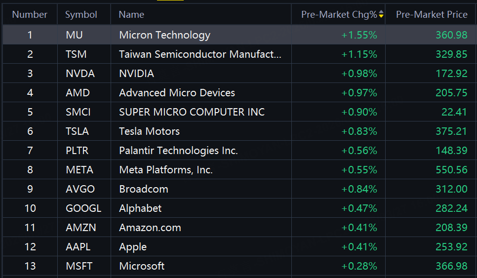 Big tech stocks rebounded in premarket trading. Micron, TSMC, Nvidia, SMCI, Tesla up around 1%.