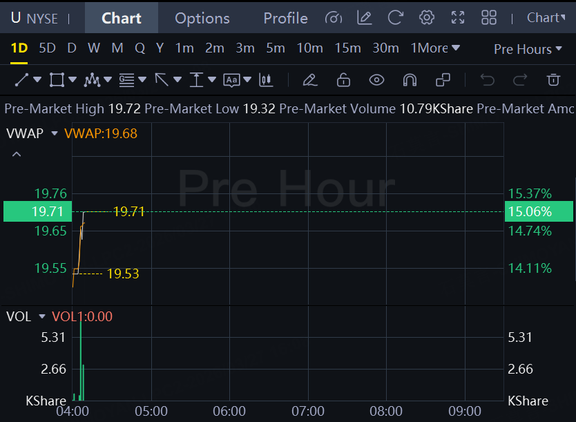 Shares of Unity Software Inc. rose 15% after the company said it would exit the non-strategic advertising business and divest from its game publishing business, as it projected first-quarter revenue ahead of its previous guidance.