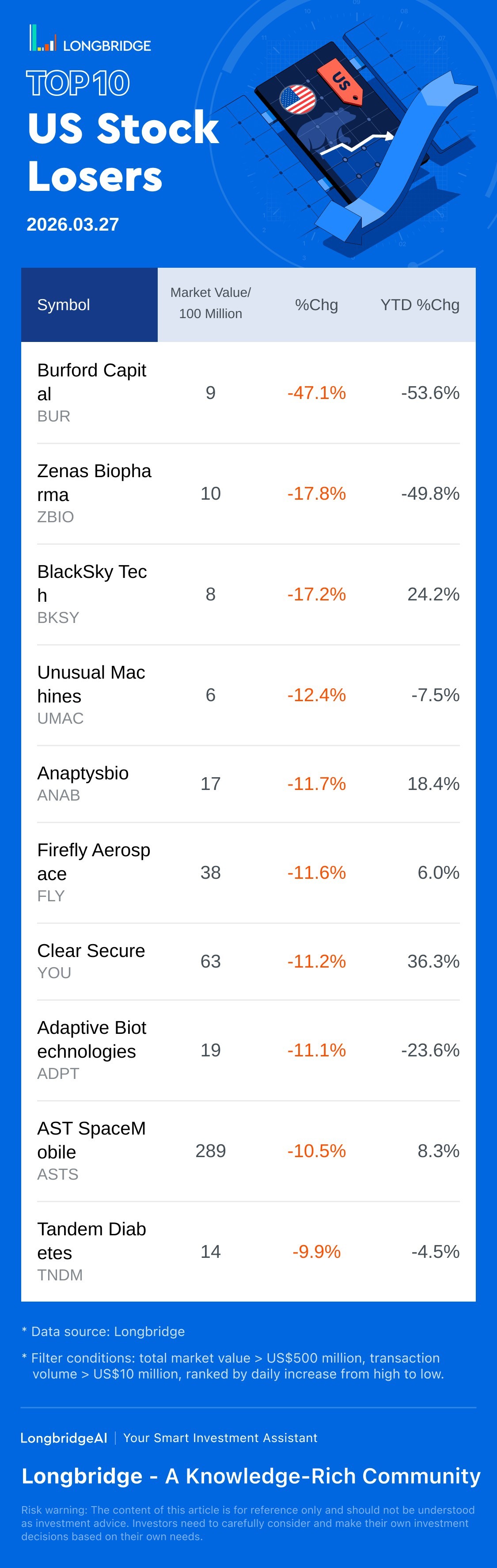 Burford Capital(BUR) fell 47.13%, with a trading turnover 181.7 Million USD, and a year-to-date fell 53.6%.
