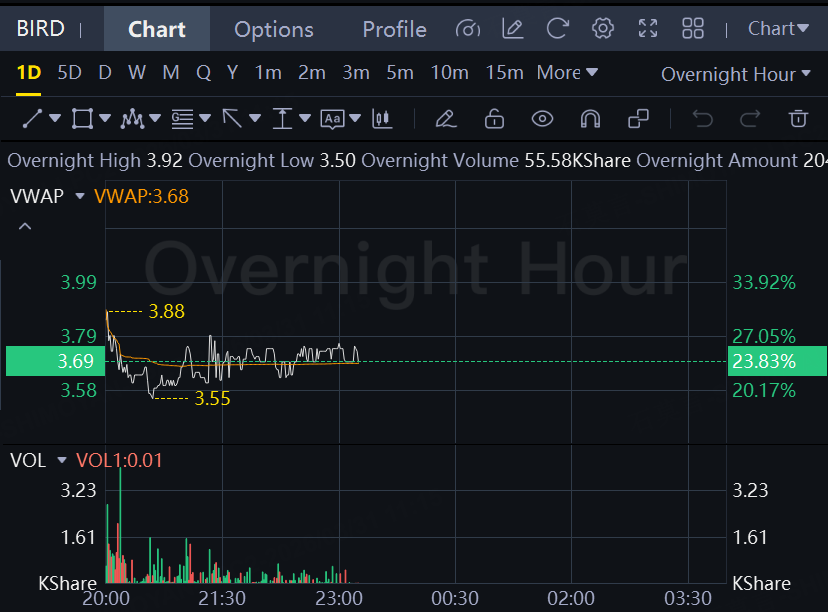Allbirds stock rose 24% in overnight trading. American Exchange Group (AXNY) entered an agreement on Monday to buy all the assets and liabilities of footwear maker Allbirds for $39 million.
