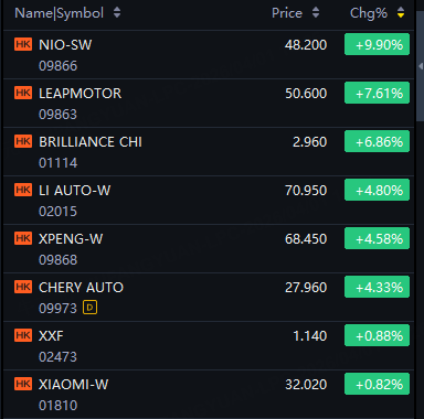 HK Movers | EV Stocks Jump; Nio up 10%; Leapmotor up 8%; Li Auto, XPeng up 5%