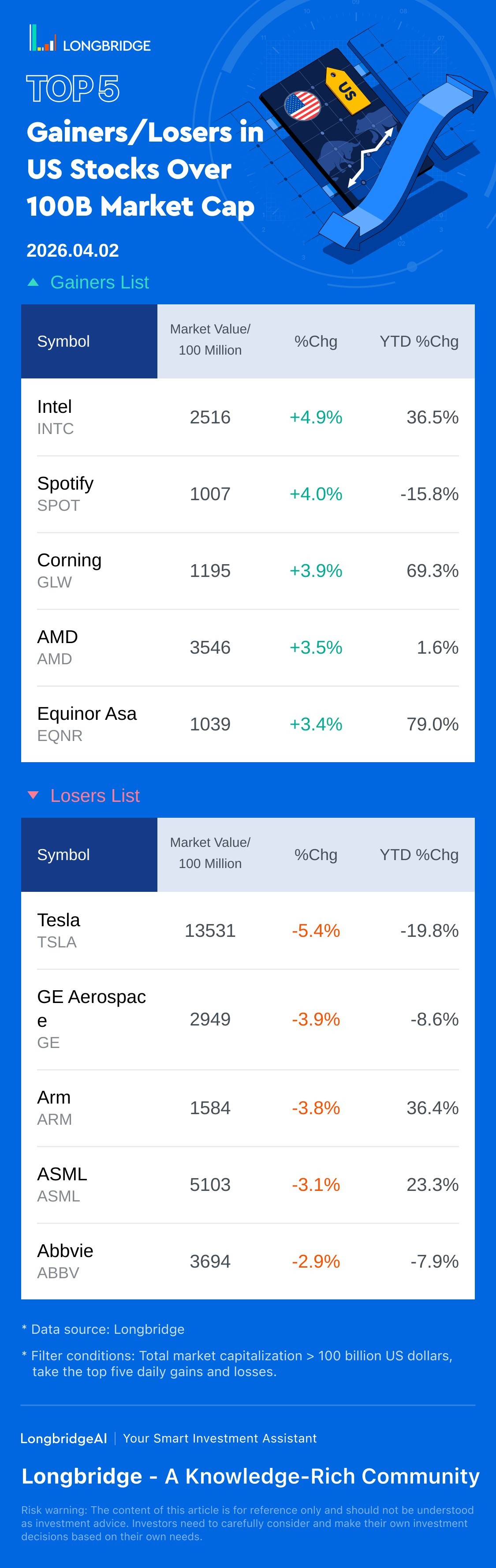 Intel(INTC) rose 4.89%, with a trading turnover 5.8 Billion USD, and a year-to-date rose 36.5%.