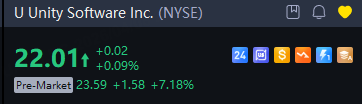 Unity Software Inc. shares rose about 7% in premarket trading on Wednesday after the company said it had extended a multi-year agreement with Meta (META) to support development on its virtual reality platform.
