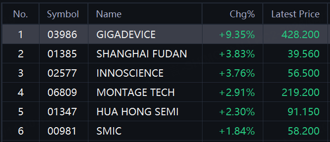 HK Movers | Semiconductor Shares Jump. GigaDevice up over 9%; Shanghai Fudan, InnoScience up Nearly 4%