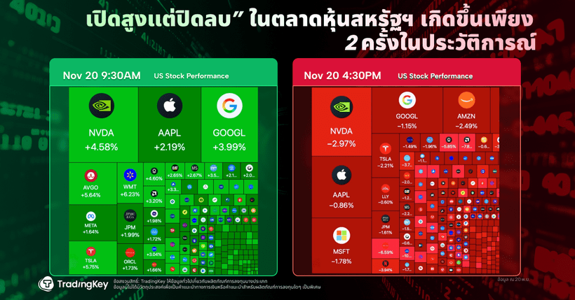 กระแส "ความไม่เชื่อมั่นใน AI" ที่กำลังพาดหัวข่าวอยู่ในขณะนี้ ส่วนใหญ่มีจุดเริ่มต้นมาจากวันที่ 29 ตุลาคม ซึ่งเป็นวันที่นายเจอโรม พาวเวลล์ ประธานธนาคารกลางสหรัฐฯ (เฟด) ได้ส่งสัญญาณที่ตลาดไม่ต้องการ หากนายพาวเวลล์ได้กล่าวในสิ่งที่หลายคนหวังไว้ เช่น "เนื่องจากความเปราะบางของการเติบโต จึงมีแนวโน้มที่จะมีการปรับลดอัตราดอกเบี้ยเพิ่มเติม" ก็มีความเป็นไปได้สูงที่ตลาดจะได้รับแรงหนุนจากปัจจัยตามฤดูกาลในช่วงปลายเดือนพฤศจิกายน อย่างไรก็ตาม สิ่งที่เราได้รับกลับเป็นตรงกันข้าม และนับตั้งแต่นั้นเป็นต้นมา ตลาดหุ้นก็ประสบปัญหามาโดยตลอด