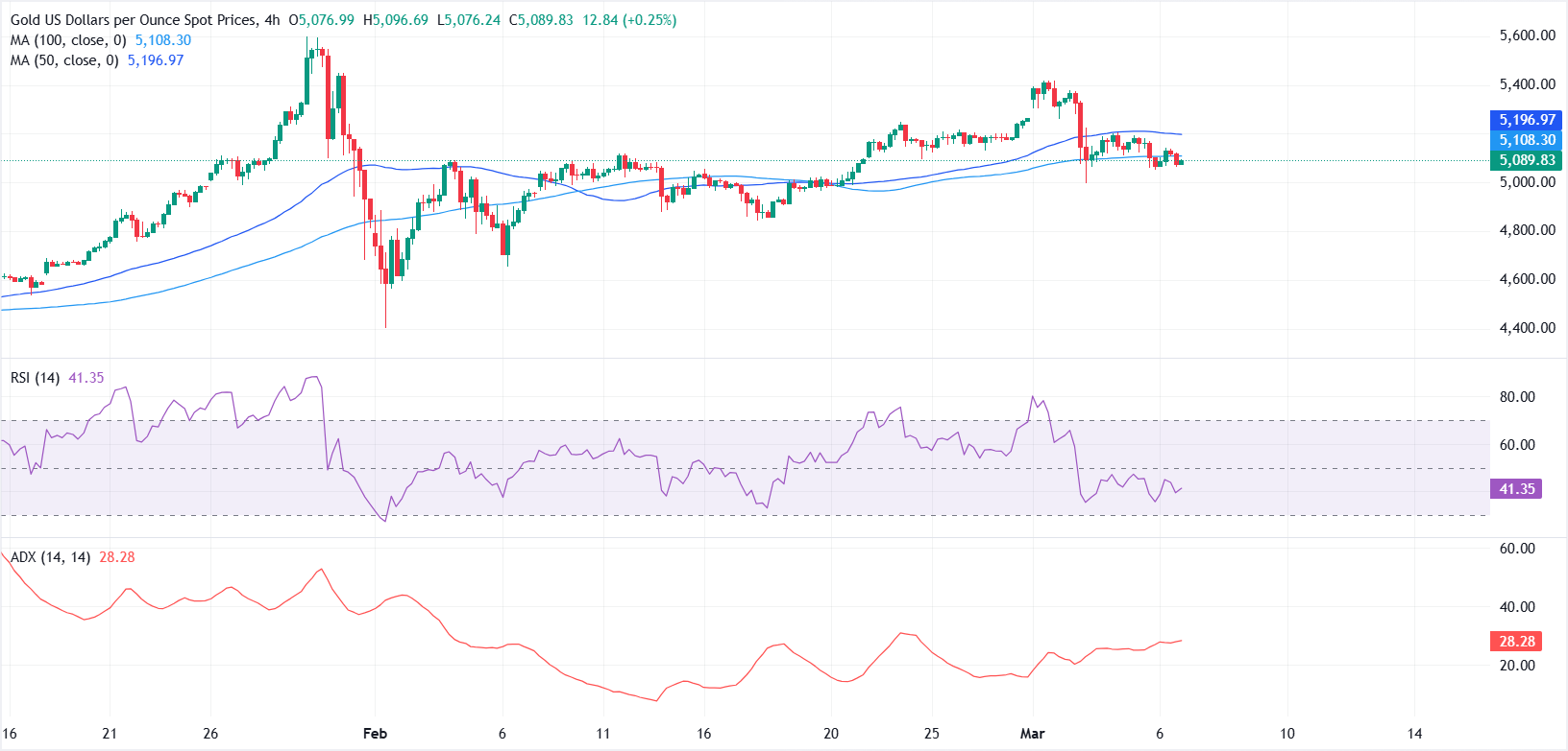 ทองคำ (XAU/USD) ลดลงในวันศุกร์ ปรับตัวลดลงจากขาขึ้นที่เคยมีมาก่อนหน้านี้ เนื่องจากดอลลาร์สหรัฐ (USD) ที่แข็งค่าขึ้นและอัตราผลตอบแทนพันธบัตรรัฐบาลสหรัฐที่เพิ่มขึ้นยังคงกดดันโลหะที่ไม่มีผลตอบแทน ขณะเขียนบทความนี้ XAU/USD ซื้อขายอยู่ที่ประมาณ $5,089 หลังจากแตะจุดสูงสุดในวันอยู่ที่ประมาณ $5,143 ในช่วงการซื้อขายในเอเชีย