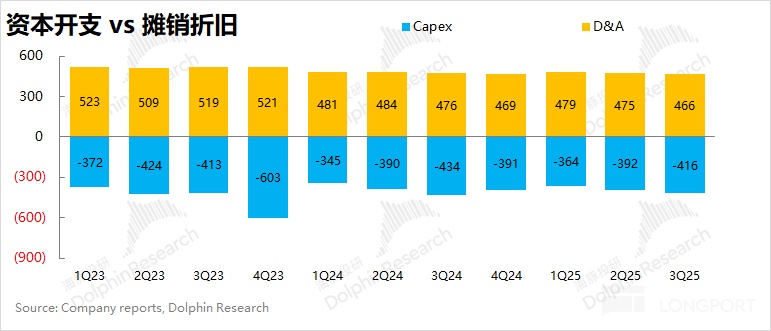 随着资本投入的减少,公司折旧&摊销相关支出将进一步下降,进而推动公司利润端的释放。