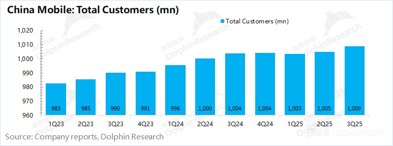 中国移动(600941.SH/00941.HK)于北京时间 2025 年 10 月 20 日晚的港股盘后发布了 2025 年第三季度财报(截止 2025 年 9 月),要点如下: