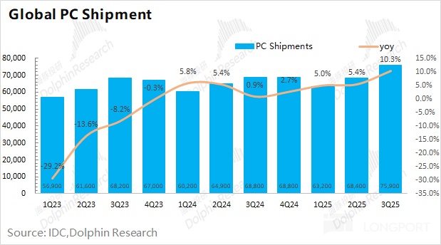 英特尔的客户端收入在 2025 年第三季度实现 85.4 亿美元,同比增长 4.6%。本季度增长,主要得益于 PC 市场回暖和下游客户备货需求的增加。