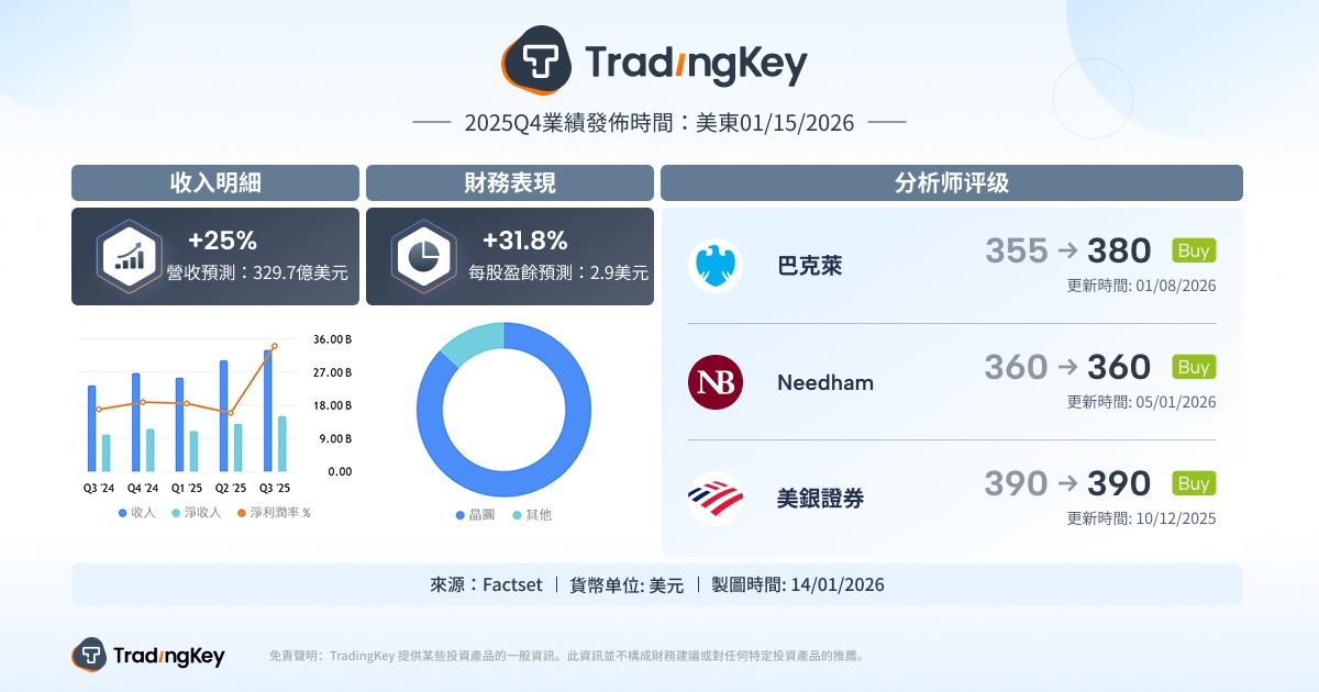摩根士丹利同样给予积极预期。该行指出,公司2025年第四季度毛利率有望超过60%,而2026年全年毛利率预计也能维持在60%以上。此外,根据当前运营趋势,台积电2026年营收或将同比增长约30%。在此基础上,摩根士丹利建议投资者在财报前增持台积电,并将目标价上调12%。