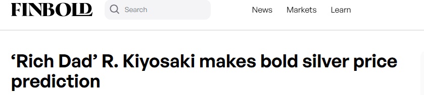 24K99讯 在持续的白银牛市中,畅销个人理财经典《富爸爸穷爸爸》的作者罗伯特·清崎(Robert Kiyosaki)作出大胆的预测,即白银价格可能在一年内再暴涨超40%。