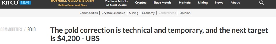 #黄金技术分析#24K99讯 瑞银(UBS)分析师周一(11月3日)表示,当前黄金市场的回调只是暂时的,黄金价格仍然有望达到4200美元/盎司。如果地缘政治或市场风险加剧,黄金价格有可能攀升至4700美元/盎司。