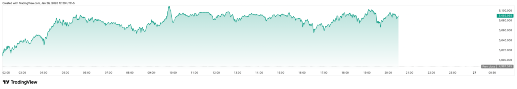 值得注意的是,黄金周一(1月26日)盘中一度暴涨至5111美元/盎司,创下历史新高,因为投资者在月底可能发生政府停摆的担忧加剧之际纷纷转向该资产。