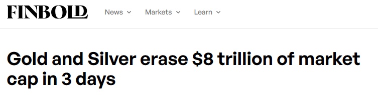 24K99讯 知名财经网站Finbold周一(2月2日)撰文称,两大传统“避险”资产——黄金和白银——在2026年初曾一路飙升、连续刷新历史新高后,于1月下旬至2月初遭遇了一场猛烈的抛售潮。