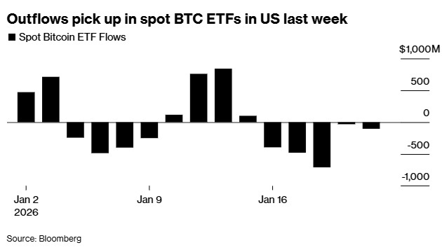 据彭博汇编的数据,美国现货比特币交易型基金(ETF)上周连续五个交易日出现资金净流出,累计规模达17亿美元,几乎抹去此前连续四个交易日的净流入。