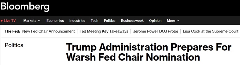 FX168财经报社(亚太)讯 美国彭博社周五(1月30日)最新发布独家报道称,据知情人士透露,特朗普政府正为总统提名凯文·沃什(Kevin Warsh)出任下一任美联储主席做准备。