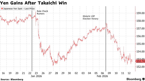 投资者认为,高市早苗以压倒性优势获胜有助于降低政治不确定性,并减少出现最糟糕财政结果的风险,从而提振日元,并推动日本国债收益率从上月触及的多年高位回落。