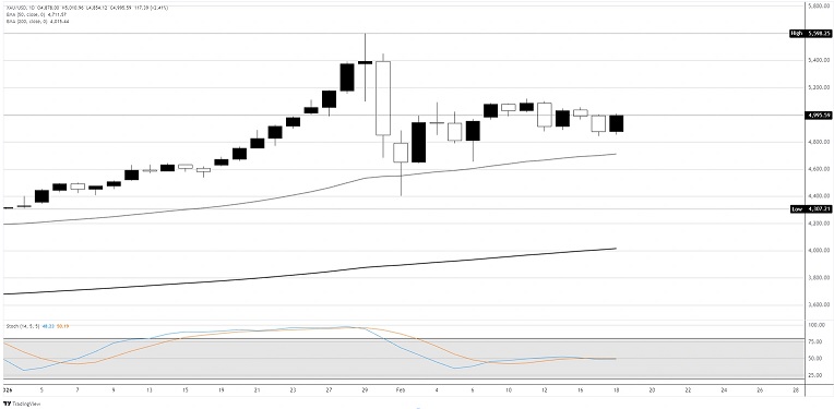 Gibson补充道,若金价未能突破5000美元/盎司并维持在该位上方,则焦点将重新转向4850美元/盎司支撑区以及2月初的波段低点4400美元/盎司。