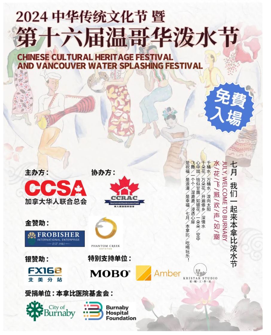 您准备好了吗?2024中华传统文化节暨第十六届温哥华泼水节将于2024年7月27日至28日在本拿比中央公园的斯旺嘉德体育场(the Swangard Stadium of Burnaby Central Park on 3883 Imperial Street, Burnaby, BC)举行啦!两天的活动丰富多彩,精彩纷呈,让您嗨翻一夏!